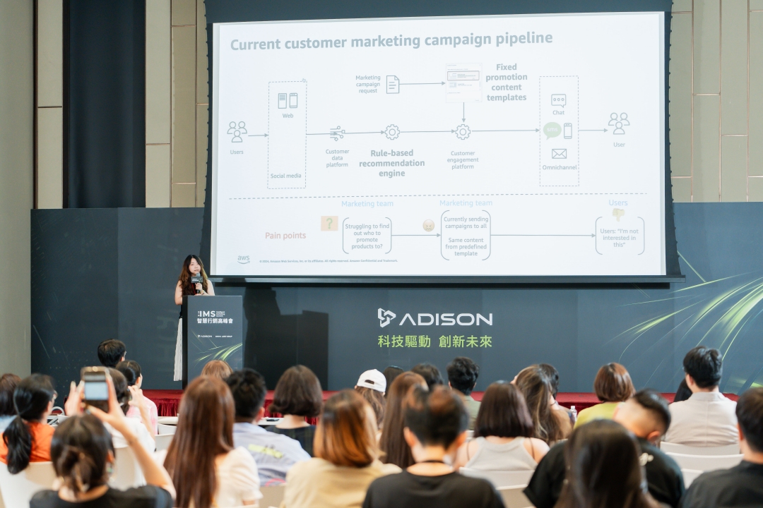 圖:AWS Industry Solution Manager Josie在台上分享個性化行銷的實際操作。